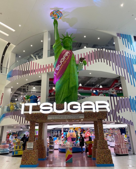I finally got to take a look inside! It wasn’t 100 percent finished yet but I was satisfied with what they did have so far. Because they had a 3 story candy store and anyone who knows me knows that’s heaven to me. I give you one of the biggest candy stores I have ever seen, IT’SUGAR!