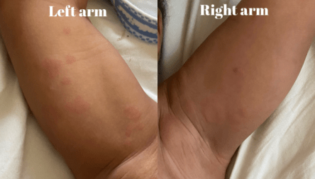 I knew it wasn’t heat related because we were pretty cool in our apartment. I immediately took pictures and sent it to my boyfriend and my sister who is a nurse. Nurse Tasha, if you don’t remember.