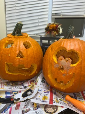 I got to experience my bf’s first time carving a pumpkin! We had fun doing it and just getting to spend time together. A lot of elbow grease was needed but I think they came out pretty cool!