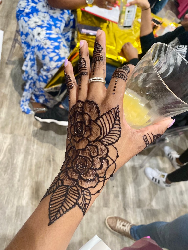 Natalia was such a vibe! When I first arrived at the event, I noticed lots of people with beautiful henna designs on their hands. I randomly said. “Damn where is the henna lady?!” And she so happened to be right there, ”Oh, thats me girl! ✋🏾” she said. She took her time on a gorgeous freelance design that she came up with at the top of her head. They are meant to last around a week and that it did! I would definitely go back for more in the future. I got tons of compliments as well on how great of a job she did! I obsessed over it for as long as I could. It also gave me a major confidence boost.