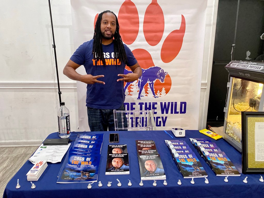 Kevin Blaize is a knowledgeable and very personable author who wants to make a change in the way young black people think. His large sign alone was enough to reel me in. When he and my brother caught glances he greeted him and started to explain and was very passionate about not only the book but financial literacy. He chatted with my brother and me for a while about why he created this book and his goals for future ones. If you’re into creative and original adventure stories, then you should also check out “Dogs Of The Wild” the first professionally written book in his trilogy. He also created an adorable children’s activity book with coloring and connect the dots type pages! We definitely need more people like him spreading the word and opening our minds.