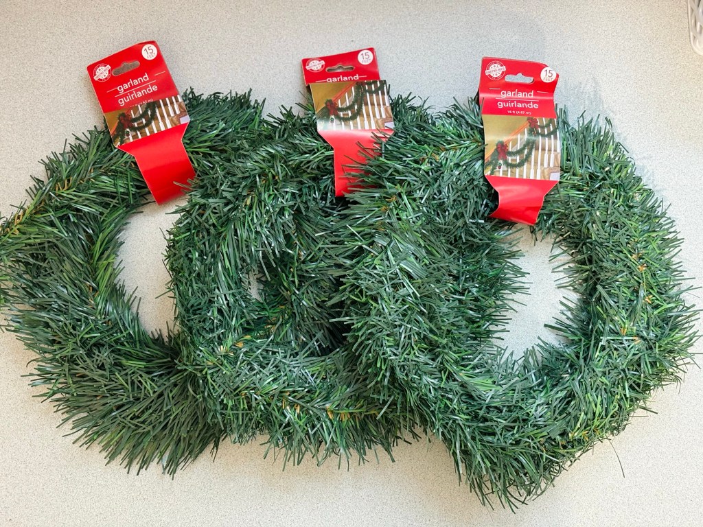 You can never go wrong with picking up some garland. Greenery can go with anything and it is easily customizable. I like to add my own touches like bows or poinsettias! I have gotten Dollar Tree garland before and it’s always held up quite well for me.